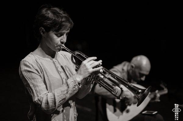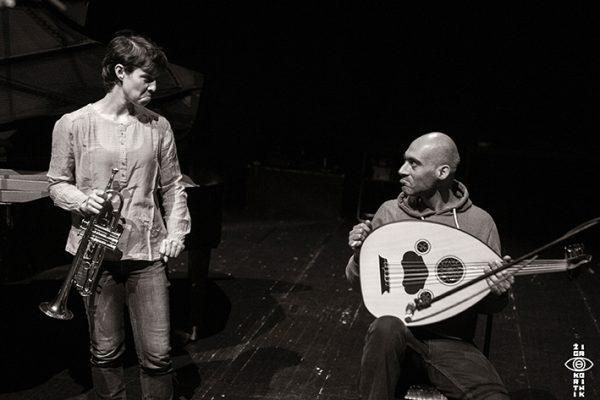 Fotozgodba s koncerta Susanne Santos Silva in Dirar Kalasha na festivalu improvizirane glasbe Neposlušno – glasbena tveganja na preizkušnji v Španskih borcih v Ljubljani 24. marca 2017.