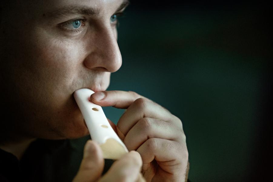 Velika sprejemna dvorana in prvo preddverje sta bila namenjena posebni priložnostni razstavi o takoimenovanem tidldibabu oziroma neandertalčevi piščali, ki je bila najdena med arheološkimi izkopavanji najdišča Divje Babe v bližini Cerkna ter ima uradno priznan status najstarejšega glasbila na svetu, hrani pa jo Narodni muzej Slovenije. V Cankarjevem domu si je bilo tokrat seveda moč ogledati repliko piščali, na katero je kot solist ob spremljavi Simfoničnega orkestra RTV Slovenija zaigral naš (izvirno sicer klarinetist, sicer pa neizčrpni multiinstrumentalist in pihalec) Boštjan Gombač. Skladbo s preprostim naslovom Baba je napisal Žiga Stanič, v GP RTV sicer zaposlen kot producent orkestra. Kot je pojasnil koncertni list, nenavadno ime glasbila “sestavljajo začetnice imen arheologa, ki je piščal odkril, umetnika, ki jo je vrnil v življenje, ter arheološkega najdišča – Turk Ivan, Dimkaroski Ljuben [leta 2016 umrli makedonsko-slovenski glasbenik, ki je rekonstruirano piščal predstavil na številnih glasbeno-arheoloških simpozijih po svetu in z njo posnel nekaj zgoščenk z raznovrstno glasbo] in Divje Babe”.